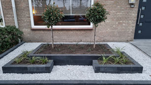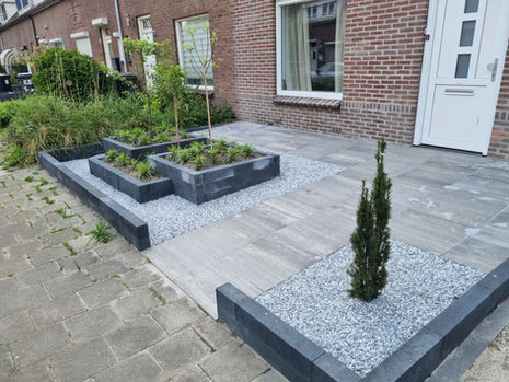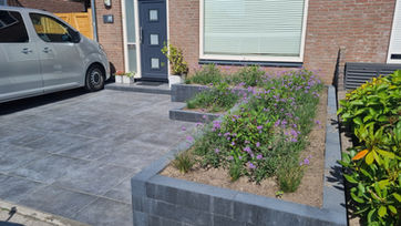 Voor en achtertuin met oprit en overkapping in Eindhoven.